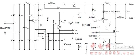 The CS1680 is a cascade boost-buck dimmable LEDdriver for the 12V halogen lamp-replacement market.