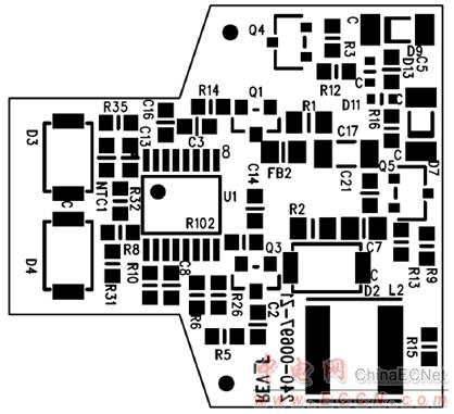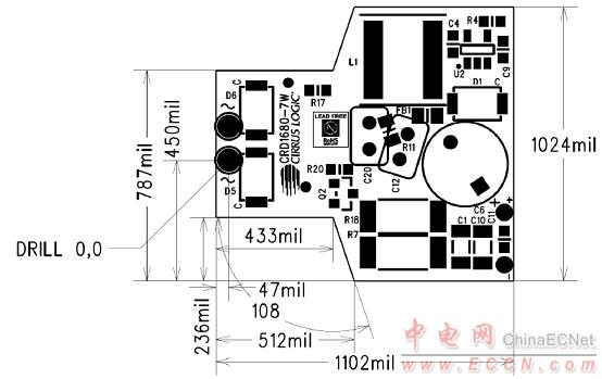 圖6.CRD1680-7W 7 W參考設(shè)計(jì)PCB頂層絲印圖