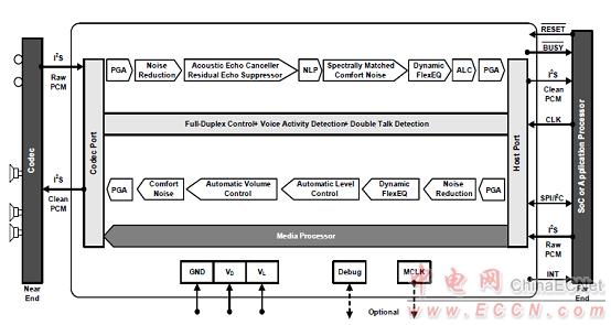 • Conference room–grade AEC plus nonlinear residualecho suppressor for superior full-duplex speakerphoneoperation without echo