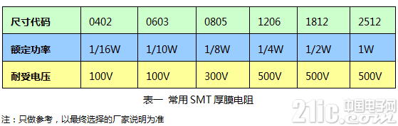 同樣,耐壓值選擇不合適的情況下,也會(huì)因?yàn)殡娮璞粨舸┒鴮?dǎo)致系統(tǒng)設(shè)計(jì)的失敗。舉個(gè)例子:AC-DC開關(guān)電源模塊在設(shè)計(jì)的輸入前端,根據(jù)安規(guī)GB4943.1標(biāo)準(zhǔn)的要求,在保證插頭或連接器斷開后,在輸入端L、N上的滯留電壓在1S之內(nèi)衰減到初始值的37%,因此,在設(shè)計(jì)時(shí)一般會(huì)采用并接一個(gè)或兩個(gè)MΩ級(jí)阻抗的電阻進(jìn)行能量泄放,而輸入端是高壓,即電阻兩端是要承受高壓的,當(dāng)電阻的耐壓值低壓輸入端高壓的情況下,就會(huì)產(chǎn)生失效。以下表一是常見SMT厚膜電阻的參數(shù),最終選型時(shí)還要和選購器件的廠家核實(shí)。