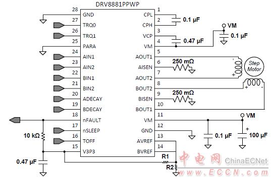 圖4。DRV8881P驅(qū)動步進馬達應(yīng)用框圖