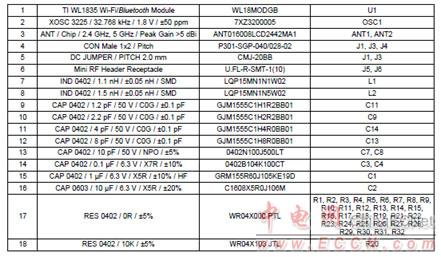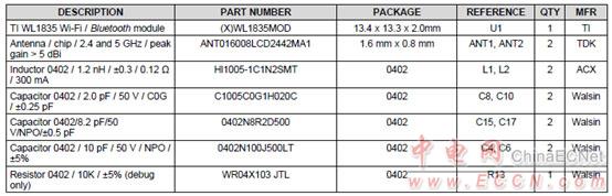 WL1835MOD參考設(shè)計材料清單: