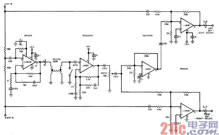 立體混響增強(qiáng)系統(tǒng)電路圖