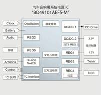 在這種背景下,汽車音響等汽車信息娛樂設(shè)備中,因USB、Bluetooth等的多功能化發(fā)展使電源系統(tǒng)日益增加,致使功耗增加成為廣為關(guān)注的課題。但是,傳統(tǒng)的汽車音響用系統(tǒng)電源IC,一般設(shè)計很容易,但因采用以效率較差的線性穩(wěn)壓器為中心的結(jié)構(gòu),所以存在應(yīng)用工作時的電源效率問題。因此,系統(tǒng)電源IC也要求采用高效率的DC/DC 轉(zhuǎn)換器,市場對高效電源IC的需求越來越大。