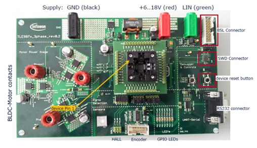 圖示1-大聯(lián)大品佳代理的英飛凌TLE987x驅(qū)動(dòng)和控制解決方案開(kāi)發(fā)板照片