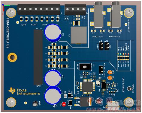 圖3.汽車四路D類放大器參考設(shè)計(jì)TIDA-00573外形圖