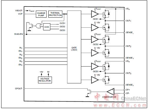 圖2.L6230磁場定向控制(FOC)應(yīng)用電路