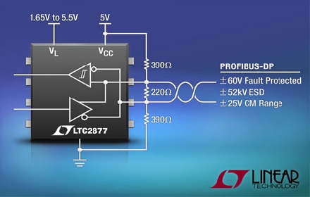 Linear推出異常堅(jiān)固和可耐受高電壓的 RS485 收發(fā)器 LTC2876 和 LTC2877,它們面向 PROFIBUS-DP (分散型外設(shè)) 主控和受控設(shè)備。與任何現(xiàn)場總線一樣,PROFIBUS-DP 系統(tǒng)容易遭遇安裝串線故障、接地電壓故障、或浪涌,這會引發(fā)超過典型收發(fā)器之絕對最大額定值的災(zāi)難性過壓情況。不管處于發(fā)送、接收、待機(jī)還是斷電狀態(tài),LTC2876 和 LTC2877 都能在其總線引腳上耐受 ±60V,從而消除了由于傳輸線路故障所引起的常見損壞。