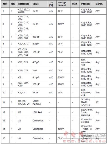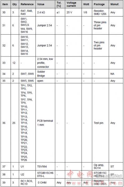 馬達控制電源板STEVAL-IPM15B材料清單: