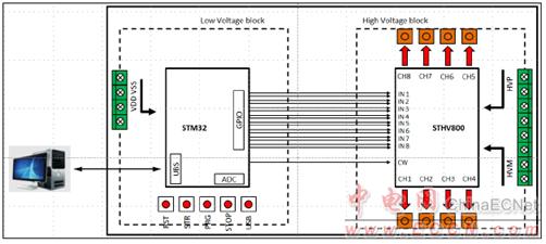 ST公司的STHV800是八路單片高壓高速脈沖發(fā)生器,集成了控制器邏輯接口電路,電平轉(zhuǎn)換器,MOSFET柵極驅(qū)動器,噪音抑制二極管,以及大功率P溝和N溝MOSFET輸出級,峰值電流大于2A,輸出電壓0到 ±90 V,工作頻率高達(dá)20MHz,主要用在醫(yī)用超聲圖像,脈沖波形發(fā)生器,NDT超聲發(fā)送器,壓電傳送設(shè)備.本文介紹了STHV800主要特性和框圖,以及基于STHV800的評估板STEVAL-IME013V1主要特性,硬件框圖,布局圖,兩種超聲波脈沖發(fā)生器解決方案框圖,以及評估板電路圖和材料清單.