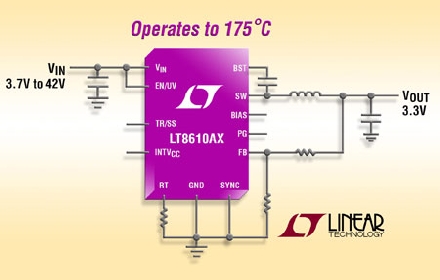 Linear推出3.5A、42V 輸入同步降壓型開關(guān)穩(wěn)壓器 LT8610AX,該器件在環(huán)境溫度高達 175°C 時保持正常運行。同步整流提供高達 95% 的效率,同時,在無負載備用情況下,以突發(fā)模式 (Burst Mode®) 運行時,保持靜態(tài)電流低于 3.5µA。其 3.7V 至 42V 輸入電壓范圍非常適合高溫應(yīng)用,例如電源電壓范圍為 5V 至 40V 的潛孔鉆進設(shè)備。LT8610AX 的電氣參數(shù)在 175°C 時 100% 經(jīng)過測試,因此可在 –40°C 至 175°C 溫度范圍內(nèi)提供 2% 的 VREF 準(zhǔn)確度。在環(huán)境溫度高達 175°C 時,LT8610AX 在很寬的 10mA 至 1A 負載電流范圍內(nèi)提供超過 90% 的效率 (對于 12VIN 至 3.3VOUT 轉(zhuǎn)換),非常適合潛孔鉆進系統(tǒng)中常見的電池供電應(yīng)用。LT8610AX 以突發(fā)模式運行時可提供超低靜態(tài)電流,非常適合需要延長電池工作時間的應(yīng)用。LT8610AX 的 16 引線耐熱性能增強型 MSOP 封裝可構(gòu)成占板面積緊湊的高熱效率解決方案。