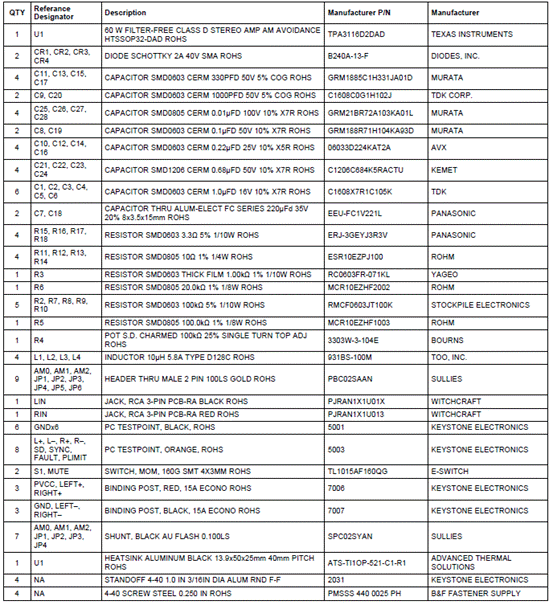 Designers can quickly evaluate the sound quality and verify specifications in their application with the TPA3116D2EVM. In addition, the TPA3116D2EVM User’s Guide contains the schematic, layout and bill of materials for a reference design.