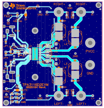圖6. 評估板TPA3116D2EVM PCB布局圖