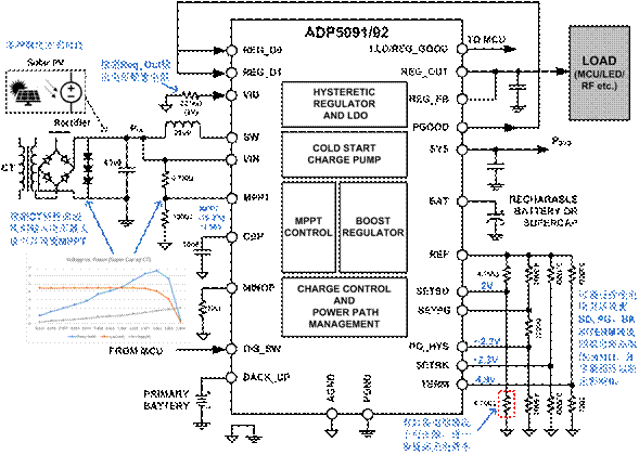 ADI公司對于能量收集芯片技術有著創(chuàng)新的解決方案。張松剛現(xiàn)身分享道:“針對能量采集芯片的挑戰(zhàn),對于大幅提高轉換效率很多物理定律及相關材料問題,不是一個很容易解決的問題,大幅度降低芯片自身的功耗及管理好采集到的能量則相對比較容易實現(xiàn)。ADI目前推出了一系列基于太陽能的能量采集芯片—ADP5090/5091/5092,是一款非常好的解決方案。首先它具有極低的功耗(<300nA)并在很低的電壓(380mV)下即可啟動工作;它可以管理采集到的微能量并給電池(鋰電池、薄膜電池、超級電容等)和電容充電,使之達到負載所需的工作電壓;可以支持突發(fā)性的射頻輸出或MCU,并支持第二個后備電池;對于如何提高太陽能的轉換效率,該芯片特別設計了MPPT控制功能來保證太陽能電池板能一直工作在最大功率點上,只需要手表盤大小的太陽能電池板即可工作。該芯片可以廣泛應用于可見光照射下的任何便攜式設備、無供電電源的傳感器、無線發(fā)射模塊、可穿戴設備等多種應用中。”