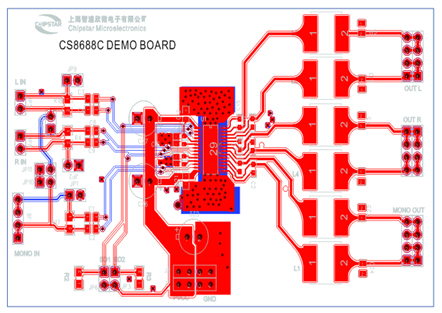 CS8688C內(nèi)置了過(guò)流保護(hù),短路保護(hù)和過(guò)熱保護(hù),有效的保護(hù)芯片在異常的工作條件下不被損壞。在供電電源小于16.0V的情況下,CS8688C可以驅(qū)動(dòng)一個(gè)4Ω 的低音喇叭和2個(gè)8Ω高音喇叭,整體音頻子系統(tǒng)具有高達(dá)90%的效率,使得在播放音樂(lè)的時(shí)候不需要額外的散熱器。