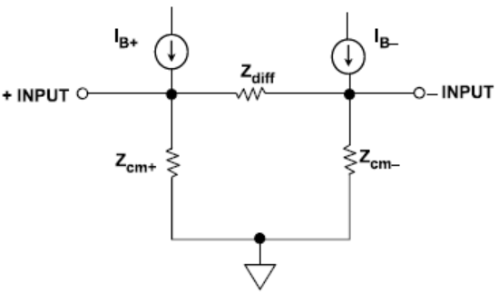 理想情況下,并無(wú)電流進(jìn)入運(yùn)算放大器的輸入端。而實(shí)際操作中,始終存在兩個(gè)輸入偏置電流,即IB+和IB-。