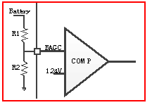 當(dāng)電池電壓降低的時候,CS8359C的最大輸出電壓幅值將會下降到1.6倍電池電壓,若電池電壓恢復(fù)上升,最大輸出電壓的幅值也會以1.6倍電池電壓升高,BAGC功能的實 現(xiàn)如下圖。