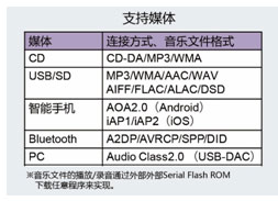 支持從傳統(tǒng)媒體(CD、USB、SD)到新媒體(智能手機、Bluetooth)、PC(USB-DAC連接),同時還支持包括FLAC和DSD在內(nèi)的眾多音樂文件格式。