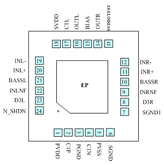 ・輸出能力:125mW (fIN = 1kHz, VDD=5V, RL=32Ω, THD+N=1%);