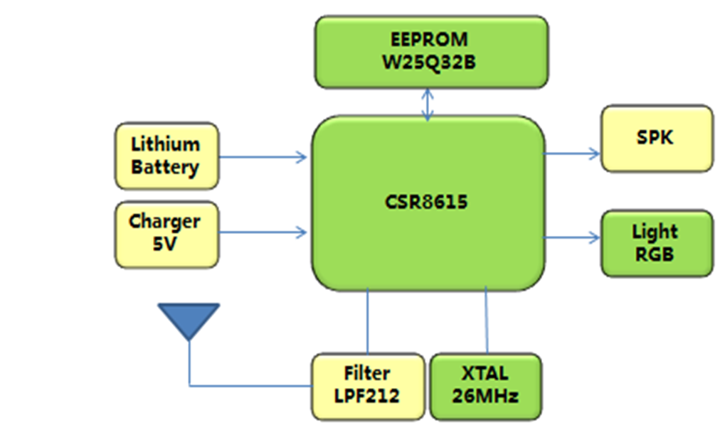 藍(lán)牙音響 (1) 藍(lán)牙v4.1(Mono方案) (2) 能夠通過藍(lán)牙播放音樂(A2DP),并可以控制手機(jī)音樂的播放/暫停/上一首/下一首/音量+/音量-(AVRCP) (3) 能夠支持接聽/拒接/掛斷(HFP/HSP) (4) 支持1 MIC Headset CVC消除回聲算法 (5) 支持GAIA,支持在iphone上顯示藍(lán)牙設(shè)備電池電量 (6) LED燈各種狀態(tài)提示,Tone音提示,語音提示
