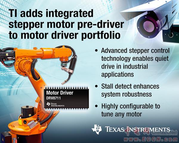 TI宣布推出首款集成型步進(jìn)電機(jī)前置驅(qū)動(dòng)器,進(jìn)一步壯大其電機(jī)驅(qū)動(dòng)器產(chǎn)品陣營(yíng)。該DRV8711 支持同類最佳片上微步進(jìn)分度器的高度可配置性,以及失速檢測(cè)與可便捷高效調(diào)節(jié)任何電機(jī)的高級(jí)電流調(diào)節(jié)功能。外部 MOSFET 可控制步進(jìn)電機(jī),支持最低熱耗散以及比性能最接近同類競(jìng)爭(zhēng)產(chǎn)品高 20% 的可擴(kuò)展輸出電流,允許設(shè)計(jì)人員自定義其設(shè)計(jì)。這款步進(jìn)電機(jī)前置驅(qū)動(dòng)器適用于各種工業(yè)應(yīng)用,包括紡織機(jī)械、視頻安全監(jiān)控、ATM 機(jī)、機(jī)器人、辦公自動(dòng)化設(shè)備以及舞臺(tái)照明等。