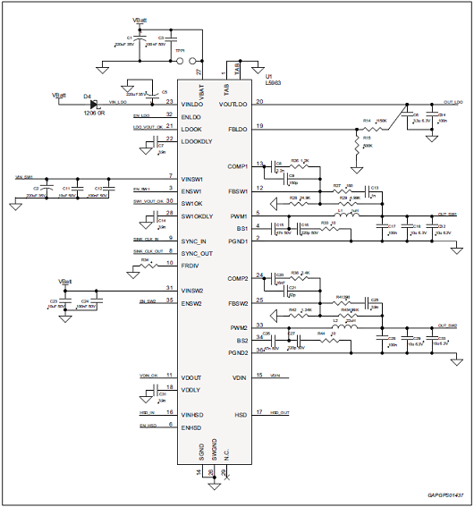 圖7.評(píng)估板EVAL-L5963Q(VQFPN-48封裝)電路圖