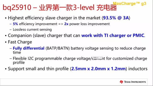 快速充電為我們帶來(lái)設(shè)計(jì)上的難度,依靠超高效率、小尺寸、高功率密度的新 Chargerbq25910可以突破這些挑戰(zhàn),實(shí)現(xiàn)半小時(shí)內(nèi)充電70%的飛躍!