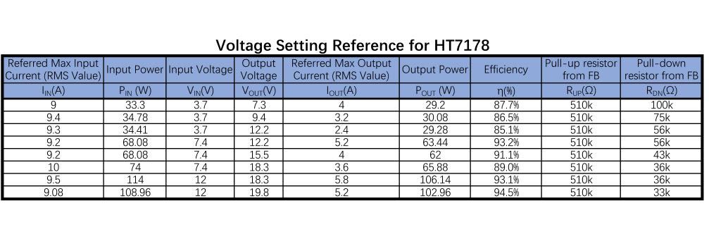 1,采用HT7178同步升壓轉(zhuǎn)換器。此設(shè)計(jì)10V-15V輸入電壓,可實(shí)現(xiàn)20V輸出,并且能夠?yàn)樨?fù)載提供5.2A連續(xù)電流;