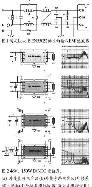 圖3所示的有源EMI濾波器,在頻率范圍150KHz~30MHz(傳導輻射標準EN55022所要求的)內(nèi),能衰減傳導模式和差模噪聲。用48Vdc總線(36~76Vdc)設計,共7A額定值支持多DC-DC變換器負載。
