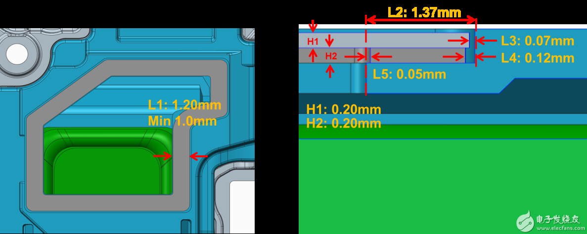 空間需求:凸包落差0.2mm;打膠寬度0.6mm;