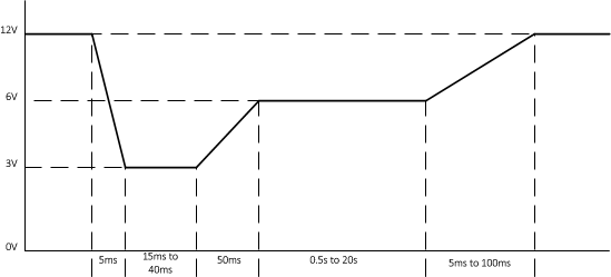 汽車系統(tǒng)需要承受高溫差、極端輸入瞬變和其它多種干擾的影響。汽車中幾乎所有的電子產(chǎn)品都需經(jīng)過嚴(yán)格的測試,以符合汽車電子委員會(huì)(AEC)規(guī)定的質(zhì)量體系標(biāo)準(zhǔn)和組件資質(zhì)。大多數(shù)汽車系統(tǒng)采用12V鉛酸電池,并且您可能知道,電池的電壓幾乎在您可以想到的每種情況下都會(huì)發(fā)生變化:環(huán)境溫度、負(fù)載條件、使用年限等等,不勝枚舉。正常工作條件下,電壓的變化范圍可達(dá)到9V-16V。在某些工作條件下,甚至?xí)蟆?dòng)內(nèi)燃機(jī)時(shí),12V鉛酸電池必須為起動(dòng)電機(jī)的繞組提供足夠的能量,在短時(shí)間內(nèi)提供大量的電流,導(dǎo)致電池電壓急劇下降。極低的溫度會(huì)導(dǎo)致電池電壓降至更低水平。這種現(xiàn)象稱為冷啟動(dòng)。典型的測試波形如圖1所示,其中電壓可以降至3V。