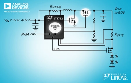 Analog Devices Inc. (ADI)宣布推出 Power by Linear™LT3762,這是一款 60V 輸出、高效率、同步、升壓型 LED 驅(qū)動(dòng)器控制器,具有一個(gè)可編程內(nèi)部 LED PWM 信號(hào)發(fā)生器和擴(kuò)展頻譜頻率調(diào)制功能,可實(shí)現(xiàn)低 EMI 噪聲。通用的 LT3762 內(nèi)置一個(gè)軌到軌電流檢測(cè)放大器,其在同步升壓之外還實(shí)現(xiàn)了高壓側(cè)或低壓側(cè)電流檢測(cè)功能,有利于同步降壓模式和降壓-升壓模式拓?fù)湟约胺峭?SEPIC 設(shè)計(jì)。