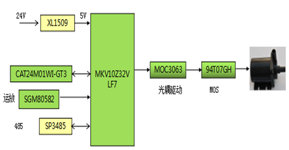 BLDC電機控制板采用了NXP的MKV10Z32VLF7的MCU,來實現(xiàn)主機控制功能,通過485總線來實現(xiàn)信號的傳輸,電機驅(qū)動是通過光驅(qū)動MOC3063芯片和MOSFET的94T07GH來實現(xiàn)。