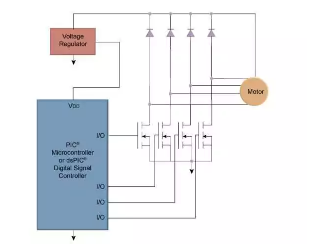 Microchip有刷直流電機(jī)控制方案的特點(diǎn)是良好的可控性、線性轉(zhuǎn)矩/電流曲線、速度與施加的電壓成比例、低散熱等。
