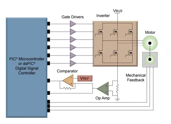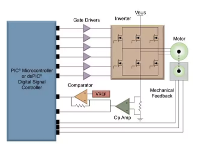 Microchip 無(wú)刷直流電機(jī)應(yīng)用還包括防鎖剎車系統(tǒng)、磁盤(pán)驅(qū)動(dòng)器伺服、油門(mén)控制等。