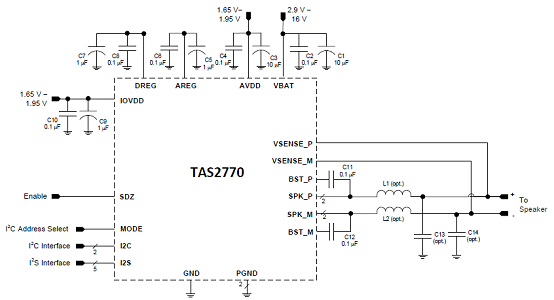 圖2.TAS2770典型應(yīng)用電路圖