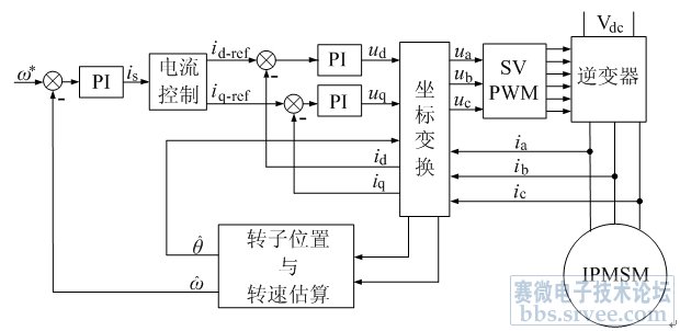 圖3:內(nèi)置式永磁同步電機(IPMSM)矢量控制系統(tǒng)框圖。