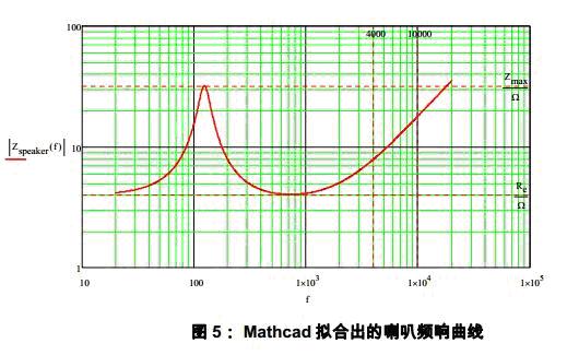 從曲線可看出,該喇叭是一個4om的喇叭。有一個位于110Hz左右的諧振點(diǎn)。從500Hz開始喇叭即呈現(xiàn)明顯的電感特性,阻抗隨著頻率的增加而持續(xù)增加。可見喇叭阻抗的標(biāo)稱值是其直流特性,隨著頻率喇叭阻抗會大幅度變化。在LC的截止頻率約30kHz 左右喇叭阻抗已經(jīng)遠(yuǎn)遠(yuǎn)大于其標(biāo)稱的直流阻抗。圖3的例子中,其30kHz的阻抗大約在40Ω附近。