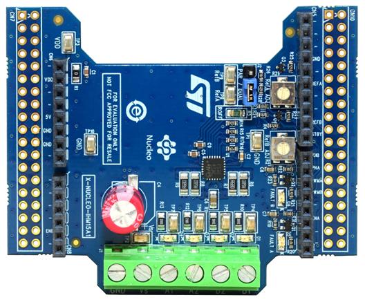 The X-NUCLEO-IHM15A1 is compatible with the Arduino UNO R3 connector and most STM32 Nucleo boards.