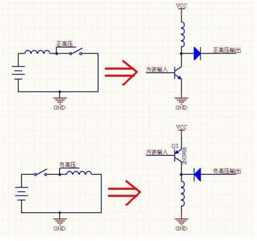 你可以很清楚看到演變,電路中僅僅把開關(guān)換成了三極管換而已。不要小看這兩個(gè)圖,事實(shí)上,所以開關(guān)電源都是由這兩個(gè)圖組合變換而來,所以掌握這兩個(gè)圖非常重要。