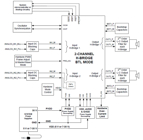 • Stereo (2 x BTL) and Mono (1 x PBTL) Operation