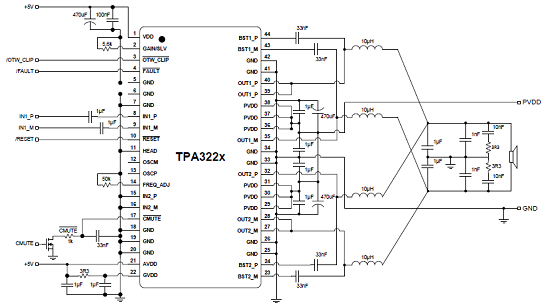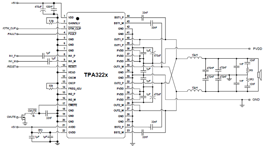 圖5.TPA3221差分(2N)AD模式PBTL應(yīng)用電路(1)
