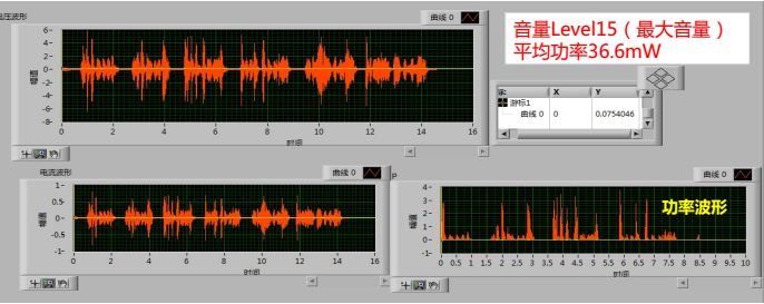 2、實際通話(112語音)時,在最大音量播放的情況下,屏幕發(fā)聲激勵器的實際功耗在36.6mW左右