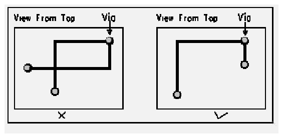 防止信號線在不同層間形成自環(huán)。 在多層板設計中容易發(fā)生此類問題, 自環(huán)將引起輻射干擾。