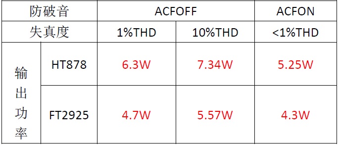 2. 防破音打開(kāi)之后,HT878輸出功率也比FT2925大,失真度比FT2925小。