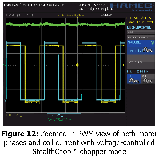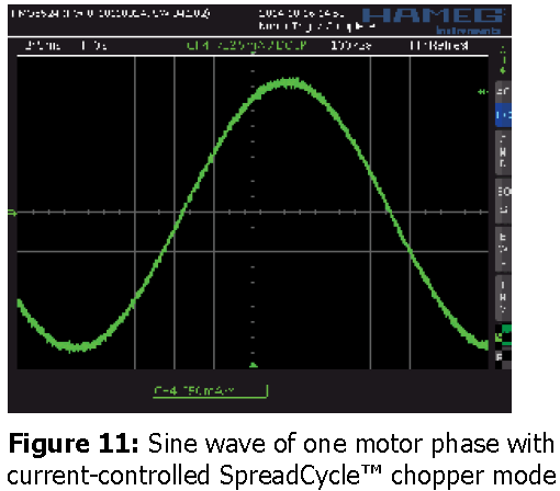 圖10和圖11顯示 電壓控制模式的Stealthchop 和電流控制模式的SpreadCycle