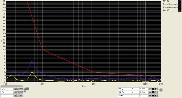 THD是英文“Total Harmanic Distrotion”的縮寫。和頻響曲線類似,在不同的頻點(diǎn),揚(yáng)聲器的THD也不同。因此THD會(huì)生成一條曲線。而一般的揚(yáng)聲器的規(guī)格中,均對(duì)THD曲線沒有相應(yīng)的描述。但實(shí)際上,THD對(duì)聽感影響極大。簡(jiǎn)要來(lái)說(shuō),THD總體偏高的揚(yáng)聲器,其聲音一定不如THD總體偏低的揚(yáng)聲器來(lái)的自然。