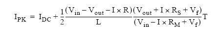 其中,Rs為感應(yīng)電阻阻抗加電感繞線電阻的阻。Vf是肖特基二極管的正向壓降。R是Rs加MOSFET導(dǎo)通電阻,R=Rs+Rm。