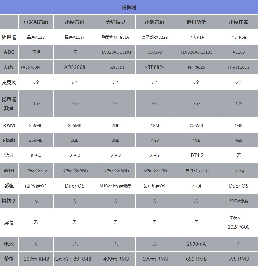 十大智能音箱硬件配置參數(shù)一覽表