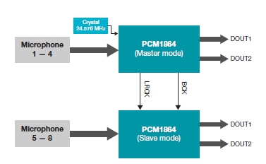 在采用多麥克風(fēng)設(shè)計和語音識別時,我們也無需重新設(shè)計。基于PCM1864 的TI 圓形麥克風(fēng)板(CMB) 參考設(shè)計(如圖 3 所示)使用兩個4通道音頻ADC 與一組模擬麥克風(fēng)(最多含八個)連接,并且可以在嘈雜的環(huán)境中提取清晰的用戶語音指令。